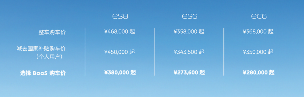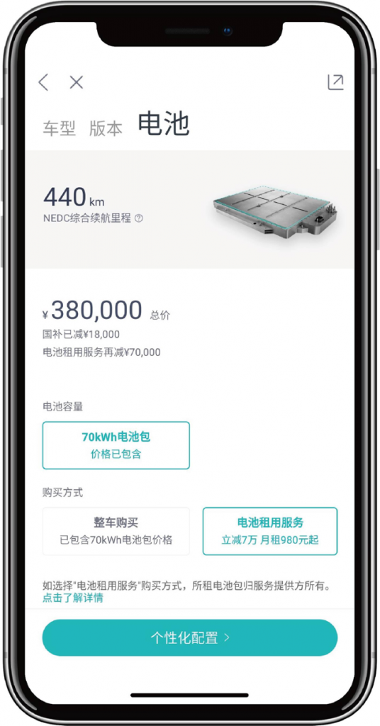 这就意味着,蔚来的客户能够将贵重的电池包“转嫁”给第三方消费金融公司,车主只需购买车身,之后每个月向消金公司付出980元起的电池包租借费即可。而蔚能将来对接的不仅仅是蔚来旗下的车型,期望赶快对接到职业的其它同类产品,关于整个职业的电动车出售来说,也是个启示。