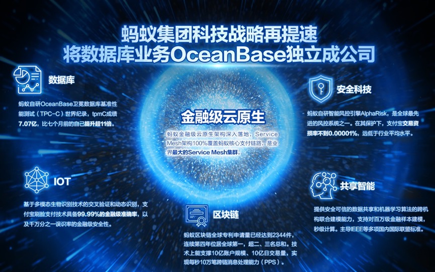 独立进行公司化运作,建立由蚂蚁 100% 控股的数据库公司北京奥星贝斯科技,并由蚂蚁集团 CEO 胡晓明亲身担任董事长。据了解,新公司将在今年内发布严重版别晋级,并计划在未来三年内服务全球超越万家企业客户。对 OceanBase 独立公司化运作一事,蚂蚁集团表明,“通过十年的开展,OceanBase 支撑了支付宝、网商银行等要害范畴的各种应战,并展现出充溢想象力的功能。咱们期望这一新式数据库能够服务更多合作伙伴。”